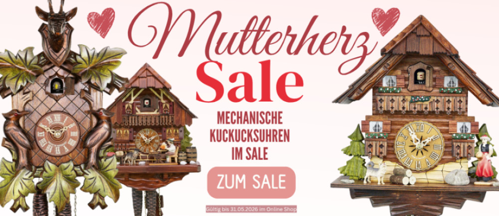 Eine günstige Alternative zum mechanischen Uhrwerk ist das Quarzuhrwerk, das mit 1,5 V Batterien betrieben wird. Rein von der Optik können Sie nicht unterscheiden, welches Uhrwerk in einer "Original Kuckucksuhr" verbaut ist. Dafür müssen Sie die Uhr von der Wand nehmen und genau das Innenleben betrachten. Eine Kuckucksuhr mit einem Quartzuhrwerk ist sehr pflegeleicht und bedarf keiner Wartung. Treten nach einem längeren Nutzungszeitraum einmal Probleme auf, ist das Uhrwerk schnell gewechselt. Denken Sie auch daran, dass Sie, wenn Sie eine originale Uhr mit Kuckuck kaufen, immer eine Werksgarantie von 2 Jahren geboten wird. Quartzuhrwerke laufen über viele Jahre hinweg genau, ohne dass sie überholt werden müssen.