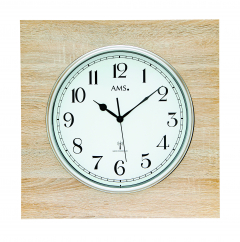 This modern AMS wall clock uses a high-quality radio-controlled movement that runs on two AA batteries. The radio transmitter is located in Mainflingen/Frankfurt. The range of the transmitter is about 1,000 - 1,500 km. Outside this range the clock is not functional.